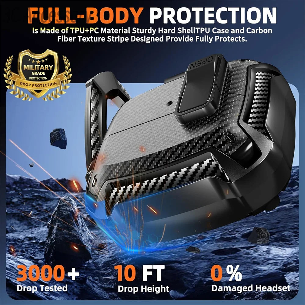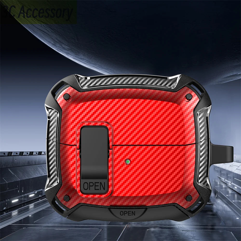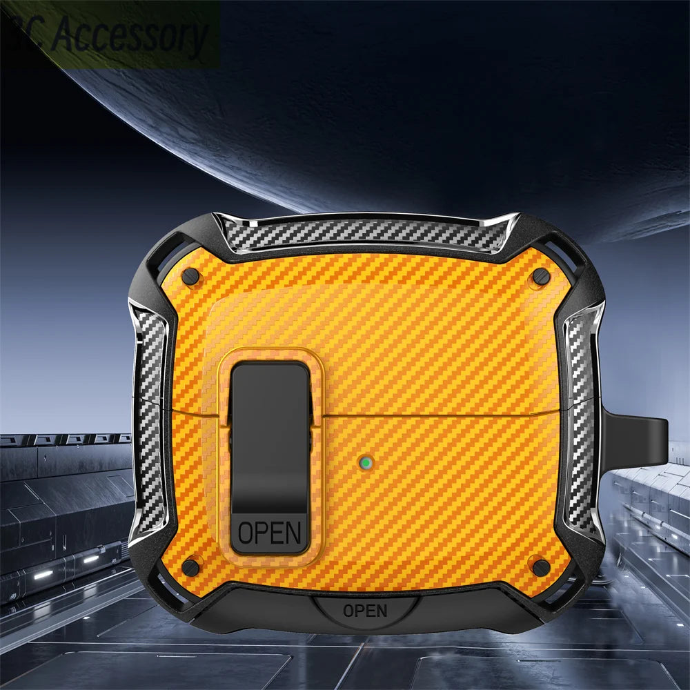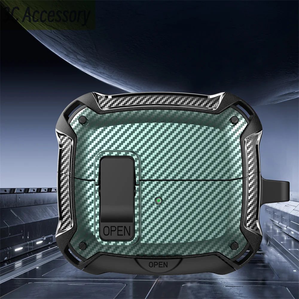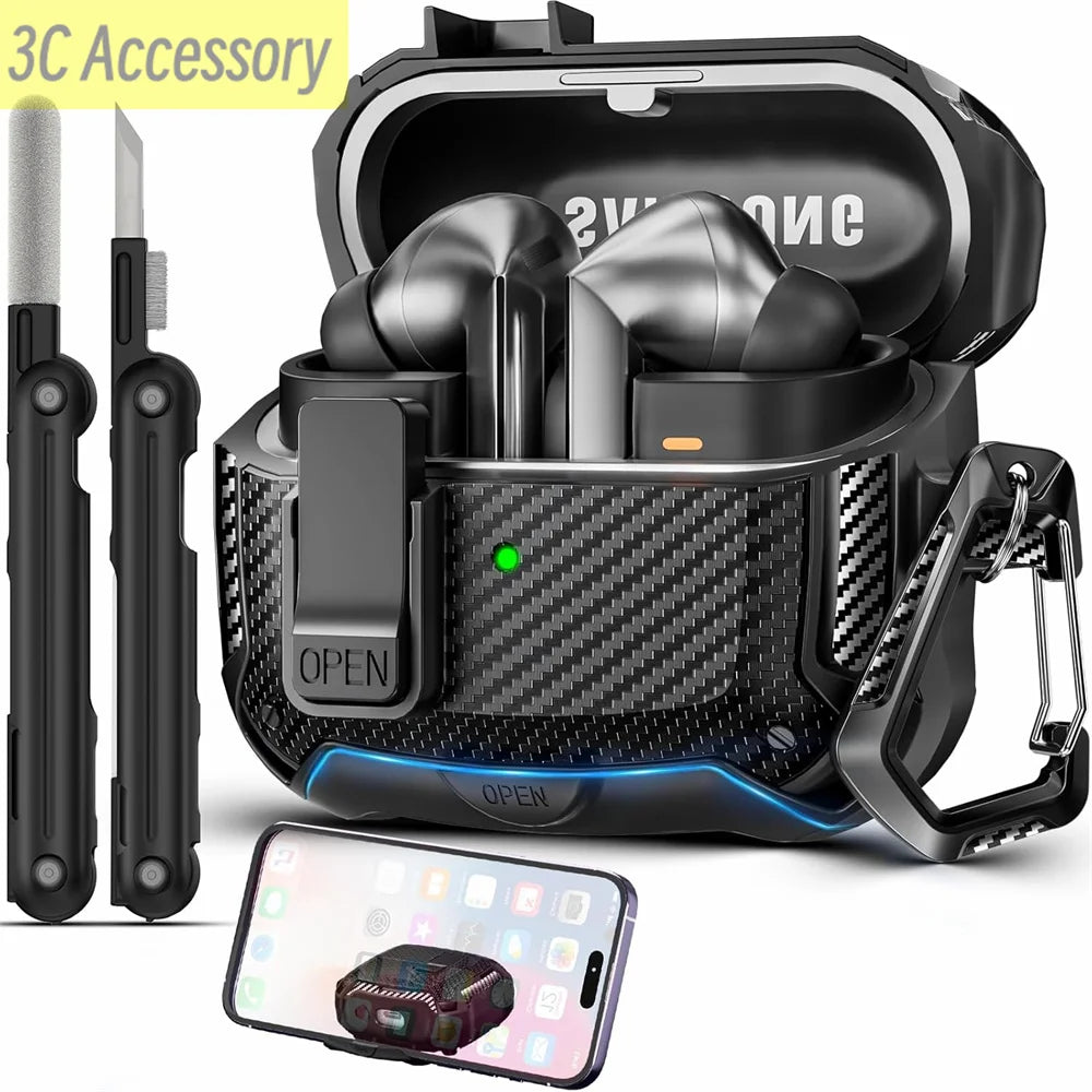 הערכה כוללת נרתיק מוקשח מחומר TPU+PC עם טקסטורת קרבון יוקרתית, עט ניקוי 3 ב‑1 לניקוי יסודי של האוזניות ומחזיק מפתחות איכותי לנשיאה נוחה.